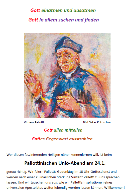 Gott mit Musik näherbringen Movimento Pallotti nimmt ein neues Mitglied auf Johannes Wogram, 34, Musiker, verheiratet mit Ronja, die schon seit einigen Jahren in der UAC – gemeinsames 2-jähriges Kind Marleen. Zusammen nehmen sie seit Jahren an unseren sonntäglichen Gemeinschaftsabenden teil, bestehend aus gemeinsamen Gebet und persönlichem Austausch. Das Photo zeigt ihn mit unserer Movimento-Pallotti-Urkunde. Johannes wurde in der Vorabendmesse ... Weiterlesen.